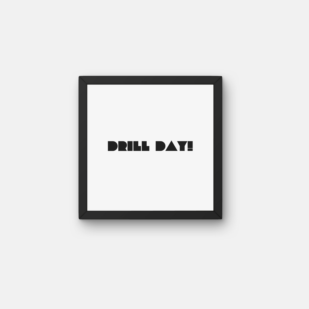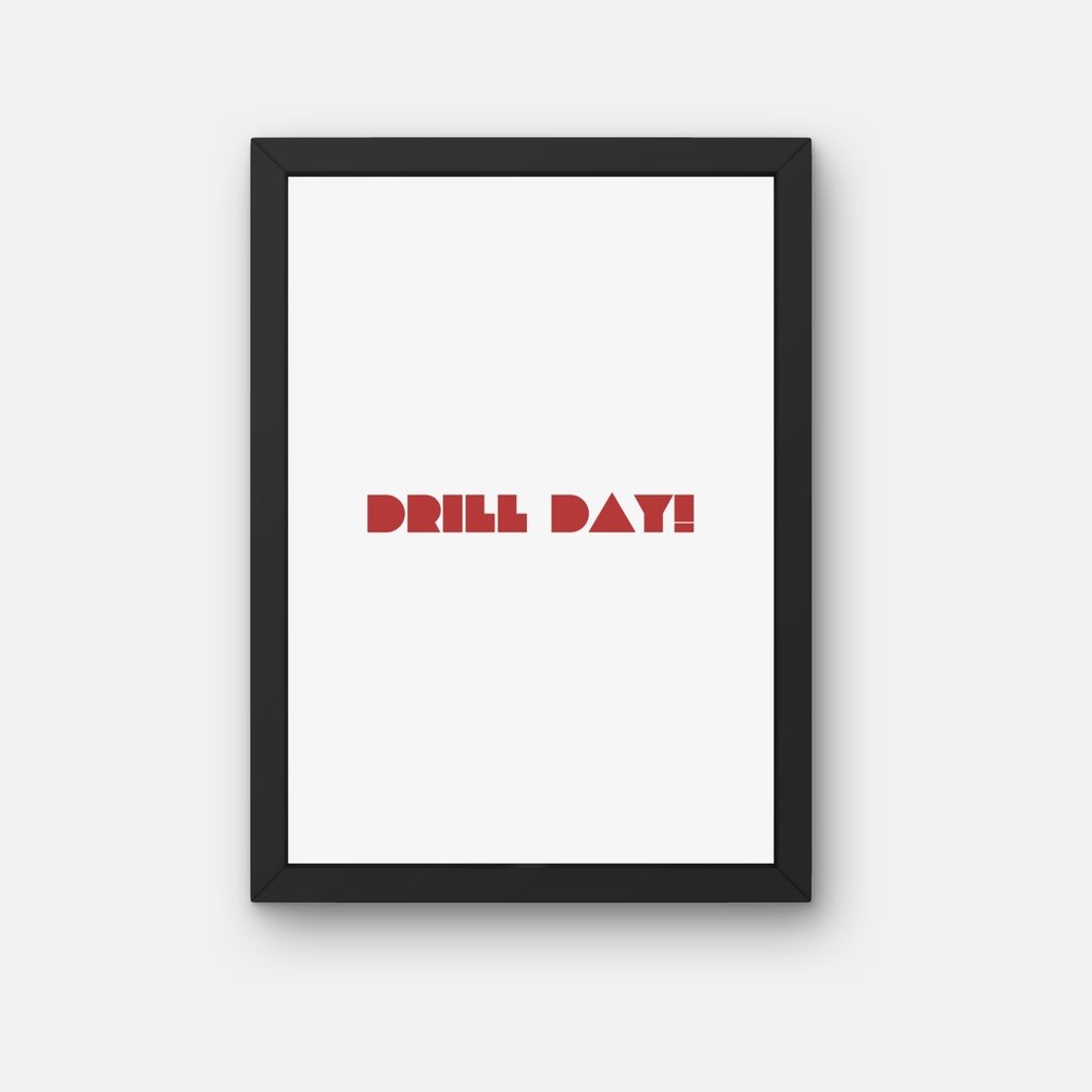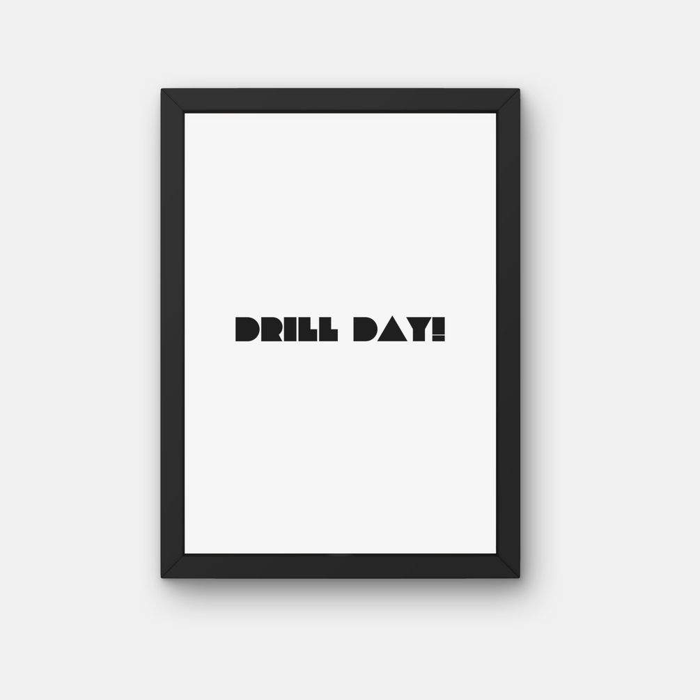 Introducing "Drill Day" digital printable wall art – a minimalistic and impactful design available in a variety of shades to suit any decor style. This artwork serves as a tribute to the concept of "Drill Day," symbolizing the strength and resilience required to tackle the most challenging tasks. Ideal for inspiring motivation, this piece can be a visual reminder of discipline, perseverance, and accomplishment. Perfect for personal workspaces, gyms, or any setting that benefits from a touch of encouragement, this print is designed to keep you focused on achieving your goals, no matter the obstacles. The loudest sound of this art tells you that noting is impossible until you work for it with hardwork.